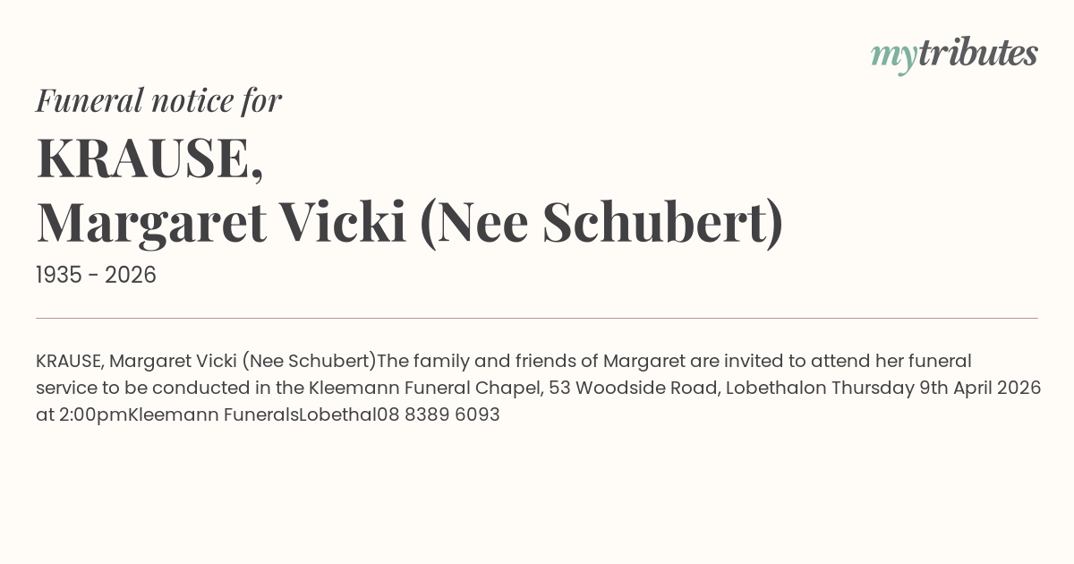 15°CKRAUSE, Margaret Vicki (Nee Schubert)