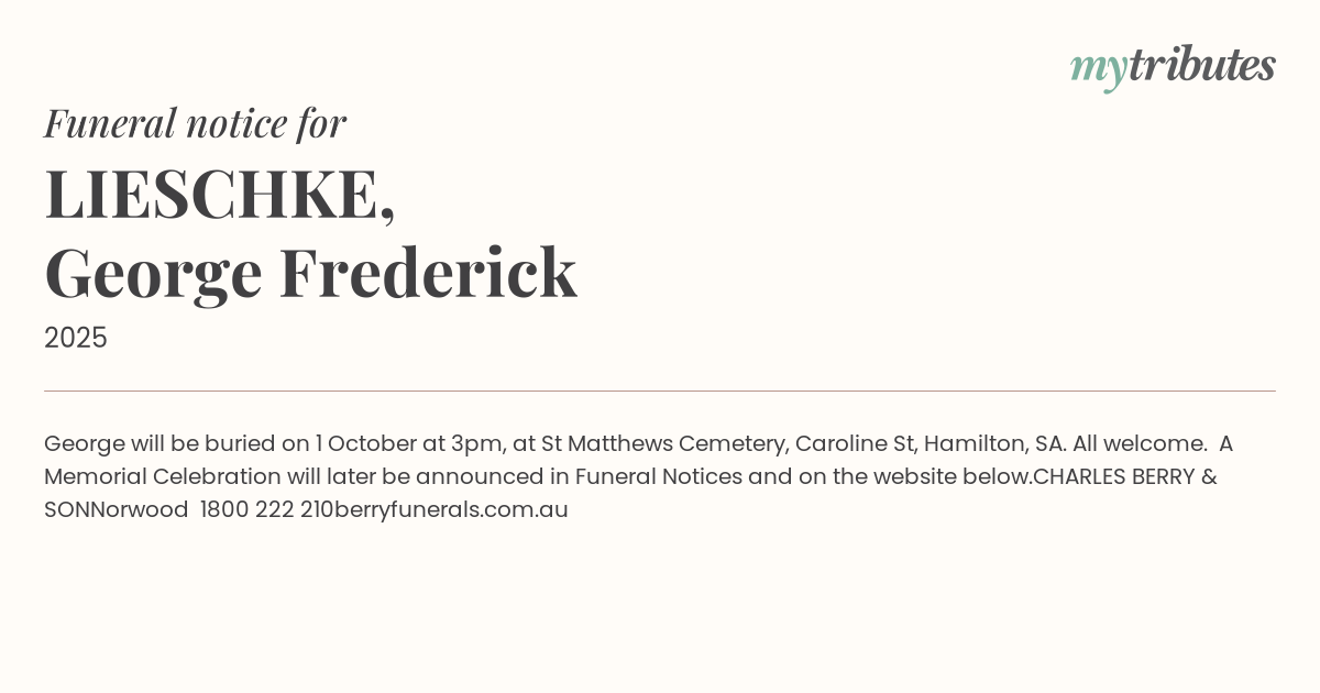 Funeral by : Charles Berry & Son