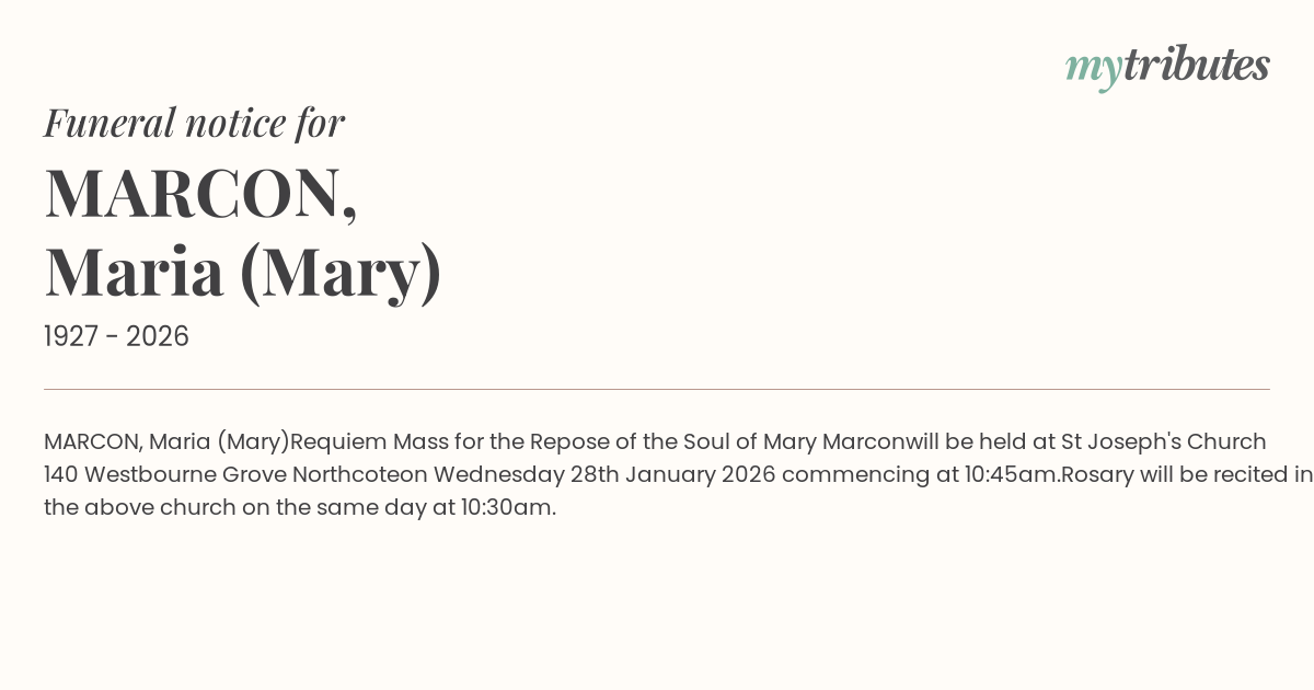 Requiem Mass for the Repose of the Soul of Mary Marcon