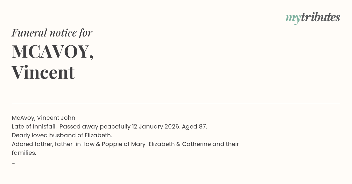 Late of Innisfail. Passed away peacefully 12 January 2026. Aged 87.