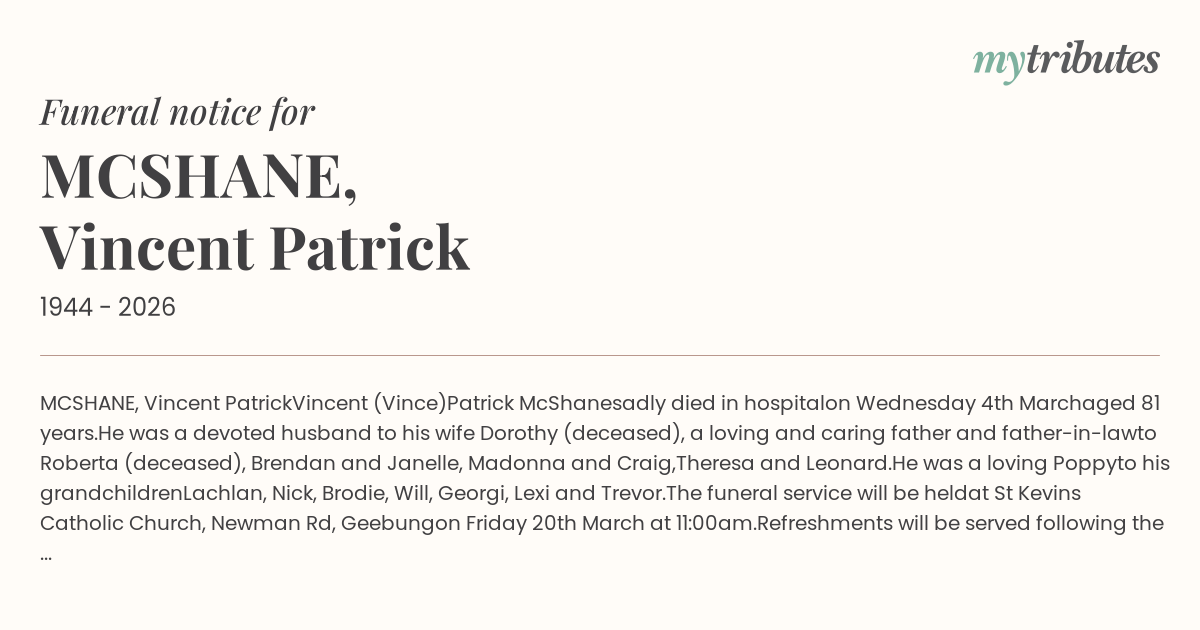 15°CMCSHANE, Vincent Patrick