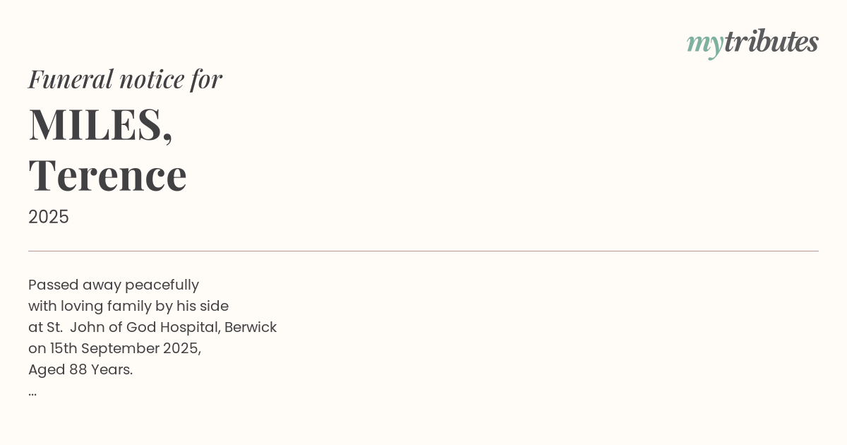Funeral by : David W Bull Funeral Directors Pakenham