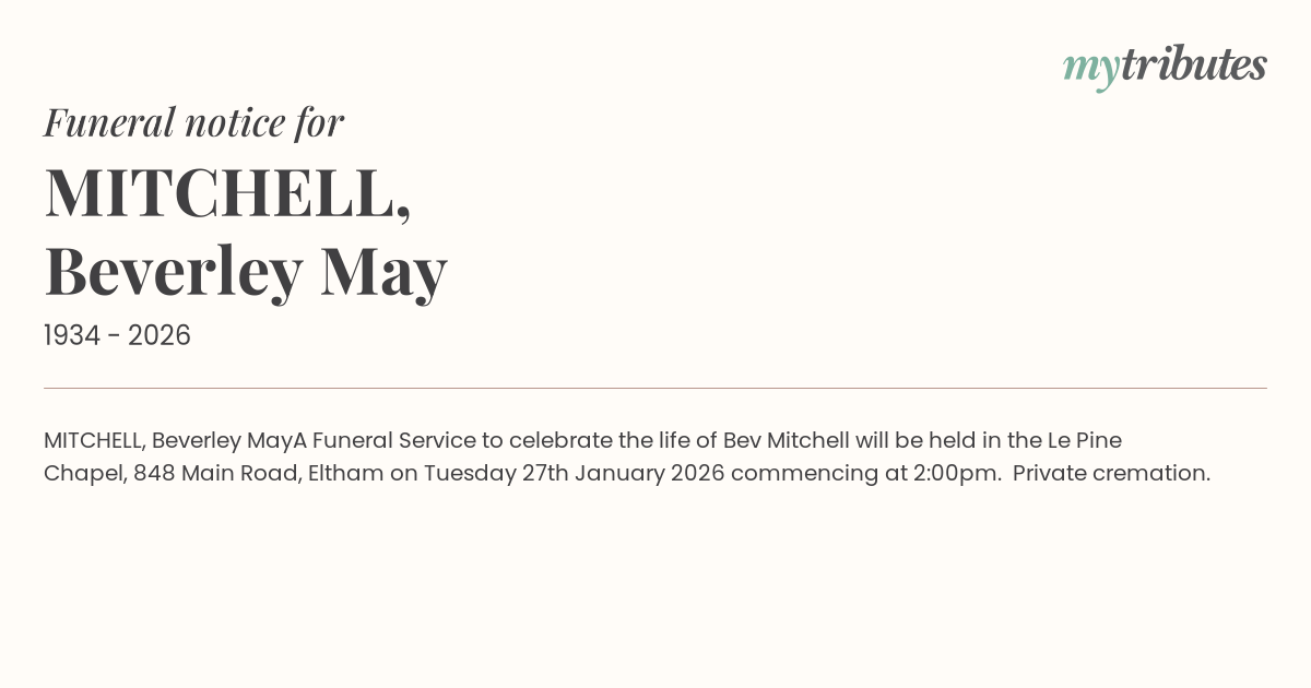 Le Pine Chapel, 848 Main Road, Eltham on Tuesday 27th January 2026