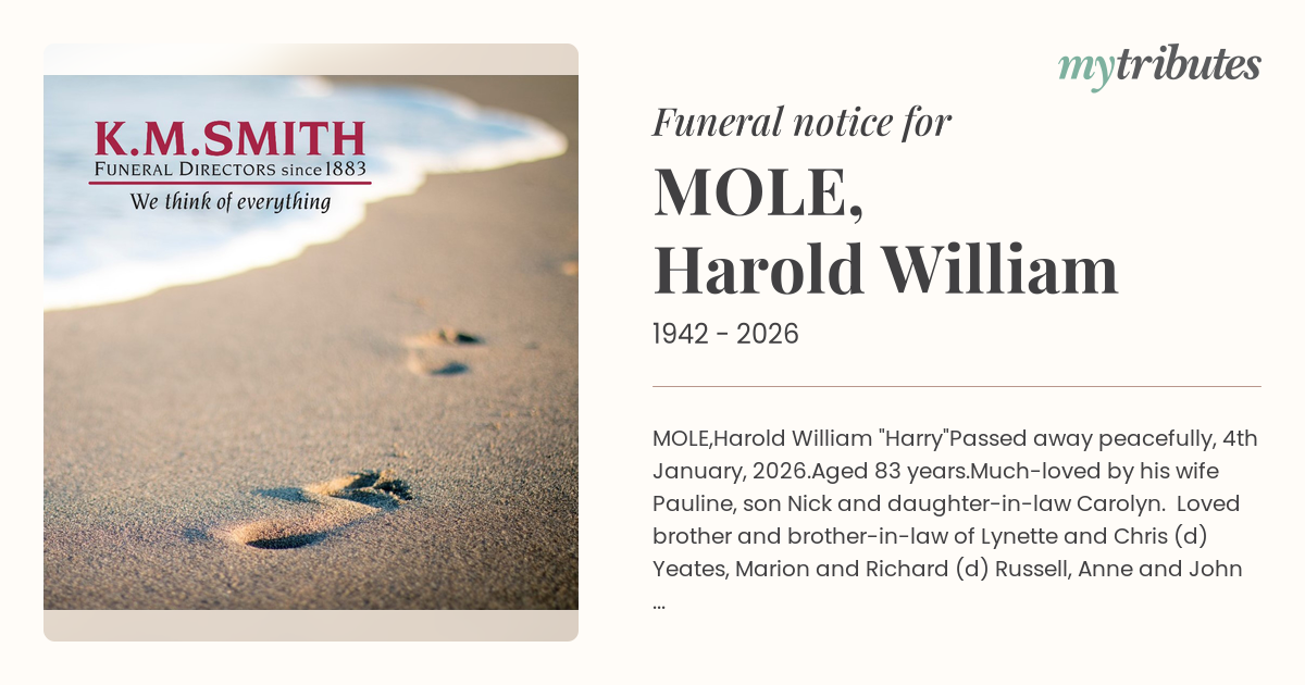 Harry's Memorial service will be held in the Holy Spirit Catholic Church, 16 Villiers Street, New Farm on Thursday, 15th January 2026 at 10:30a.m.