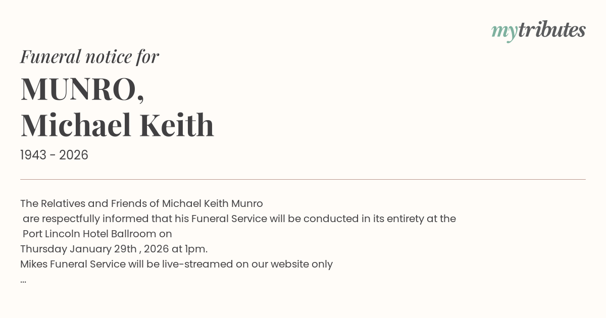 Mike’s Funeral Service will be live-streamed on our website only