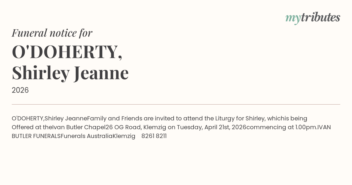 Website: http://www.ivanbutlerfunerals.com.au