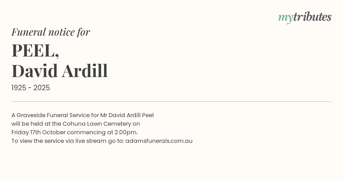 15°CA Graveside Funeral Service for Mr David Ardill Peel