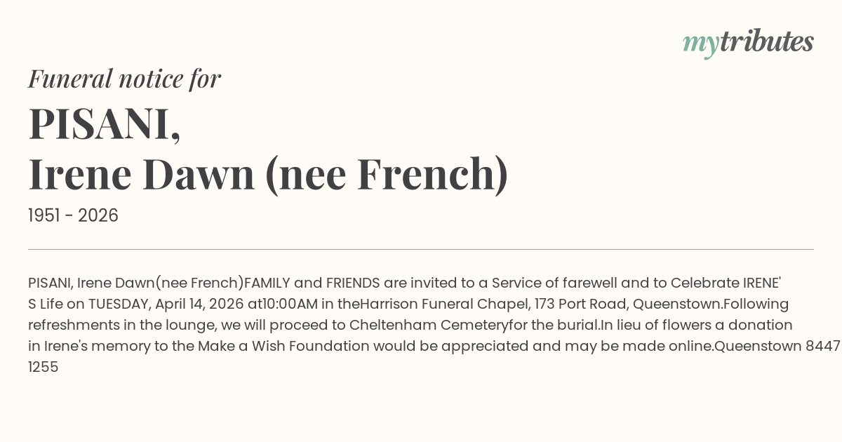 Harrison Funeral Chapel, 173 Port Road, Queenstown.