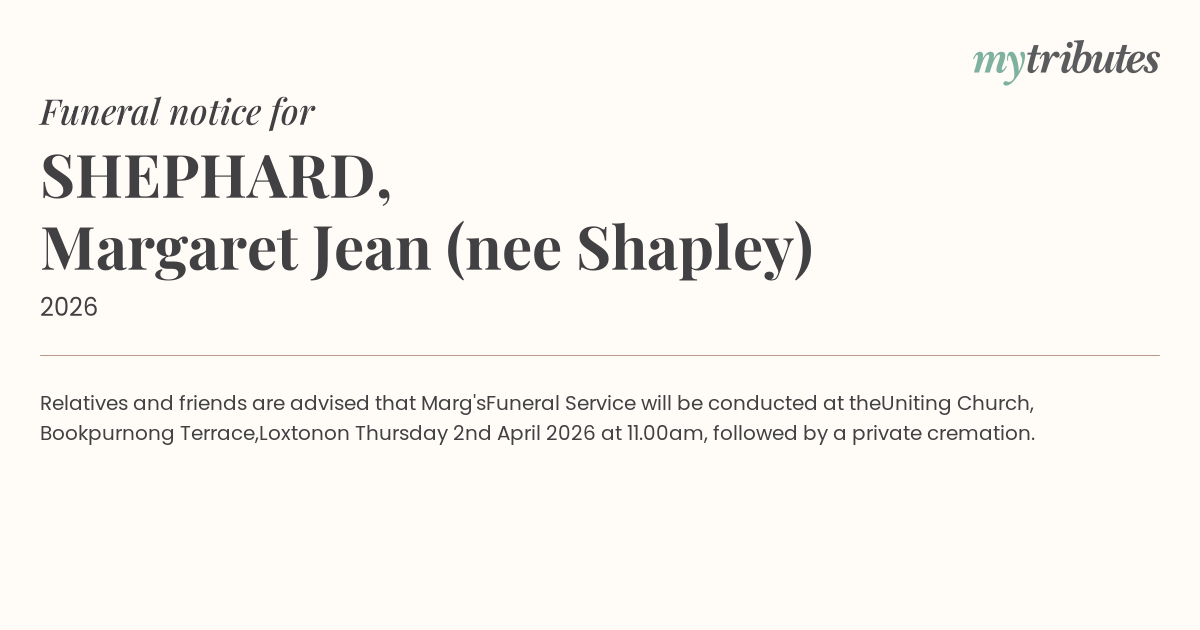 15°CRelatives and friends are advised that Marg's