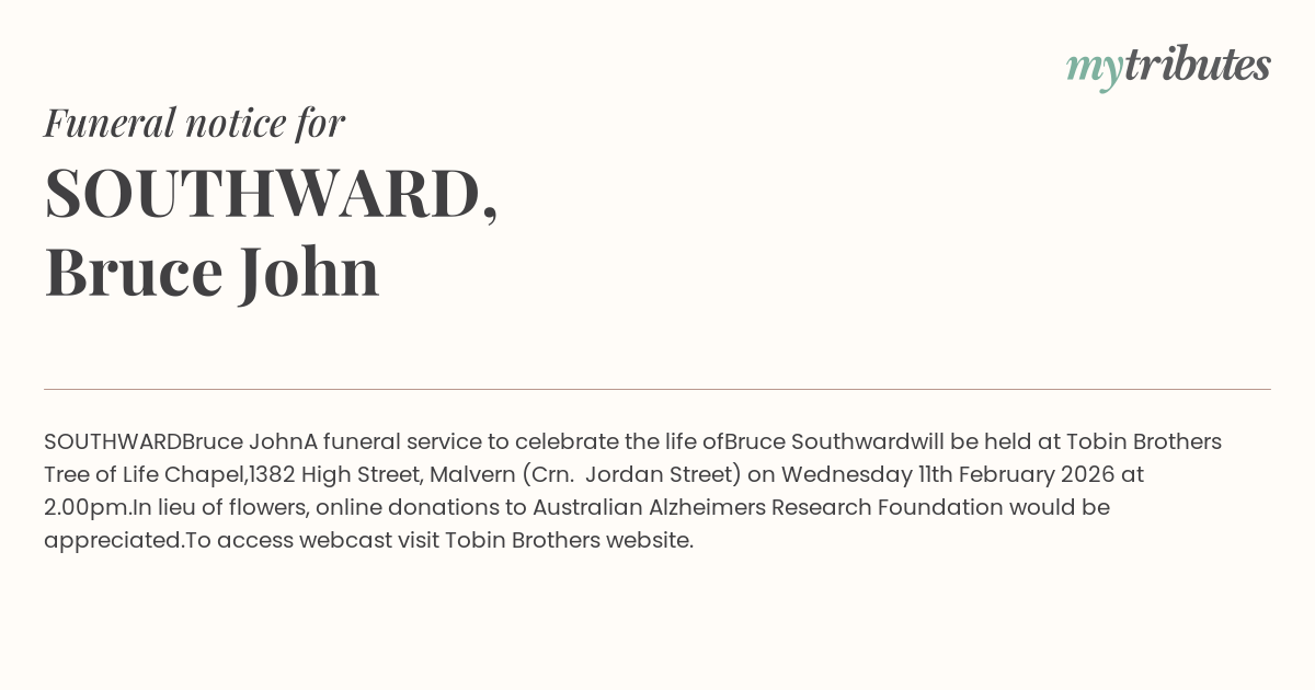 In lieu of flowers, online donations to Australian Alzheimer’s Research Foundation would be appreciated.
