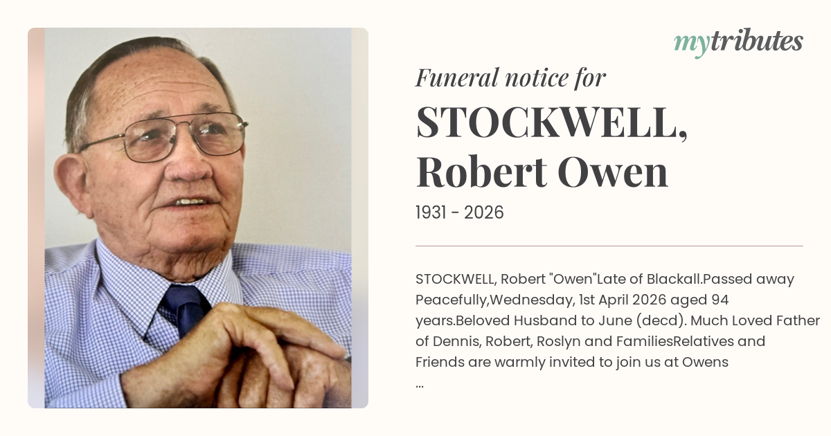Relatives and Friends are warmly invited to join us at Owen’s graveside Celebration of Life, being held at the Blackall Lawn Cemetery, Saturday, 11th April 2026 commencing at 10:00am.