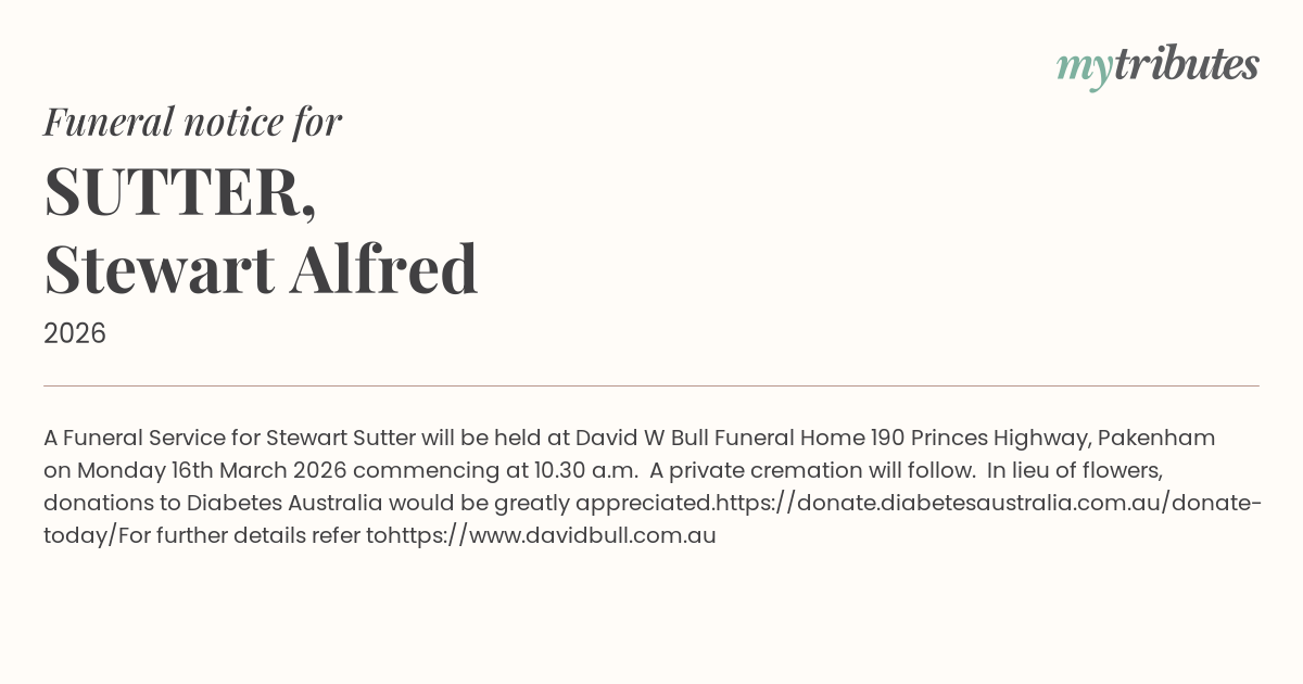 Stewart Sutter will be held at