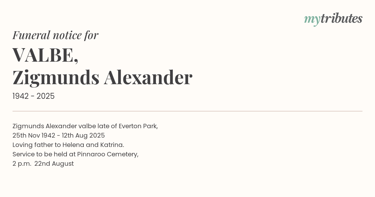 15°CZigmunds Alexander Švalbe late of Everton Park,